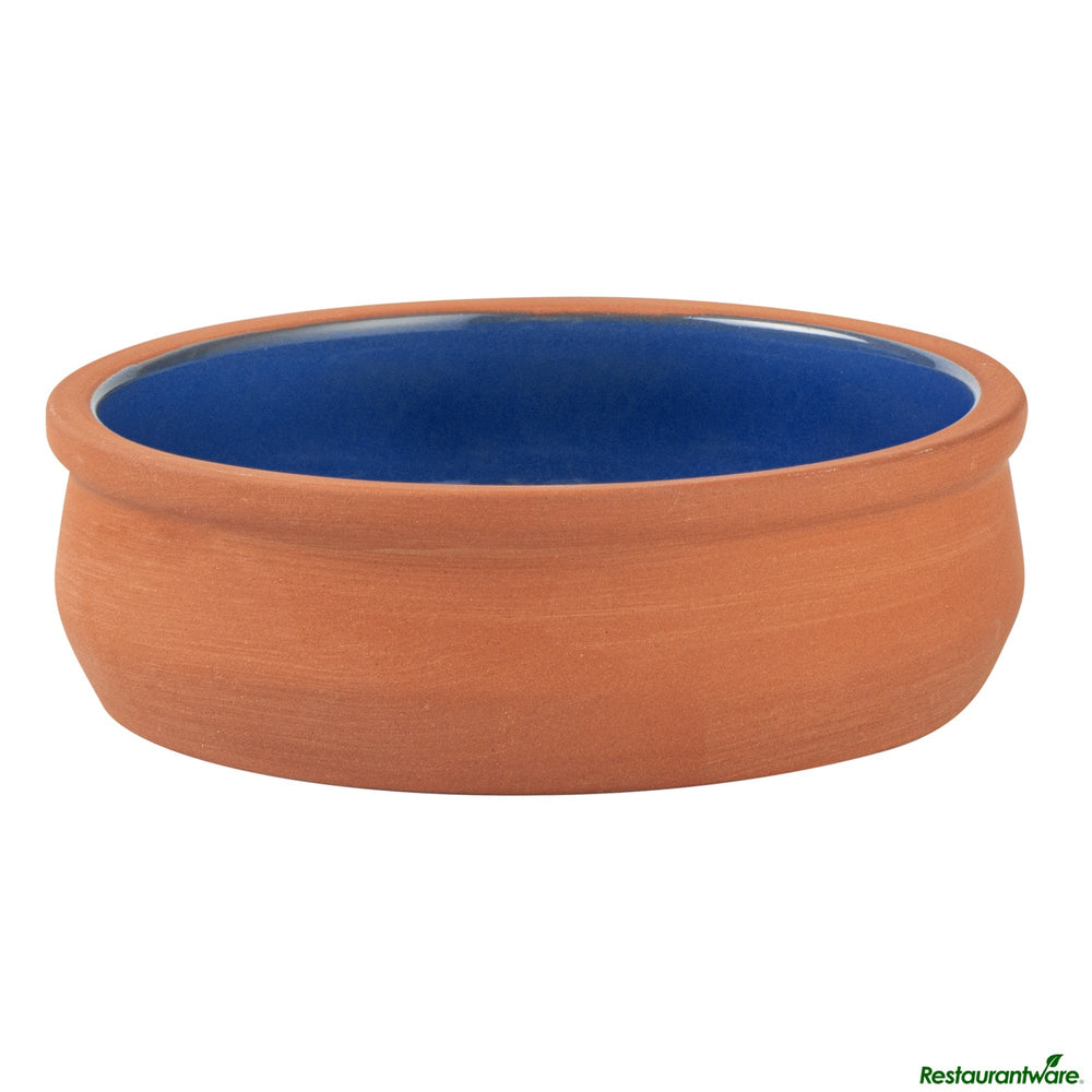 Restaurantware Terra Tek 9 Ounce Terracotta Cazuela Bowls, Blue Glazed Interior, 4.75 x 4.75 x 1.50 Inch, Oven-Safe, 2/Box