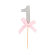 Restaurantware 3.5 x 1.5 Inch Paper Cake Topper, Pink, with Silver Glitter & Pink Bow, 100 Ct Package, 1/Case