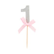 Restaurantware 3.5 x 1.5 Inch Paper One Cake Toppers, Silver Glitter, with Pink Bow, 10 Ct Package, 1/Case