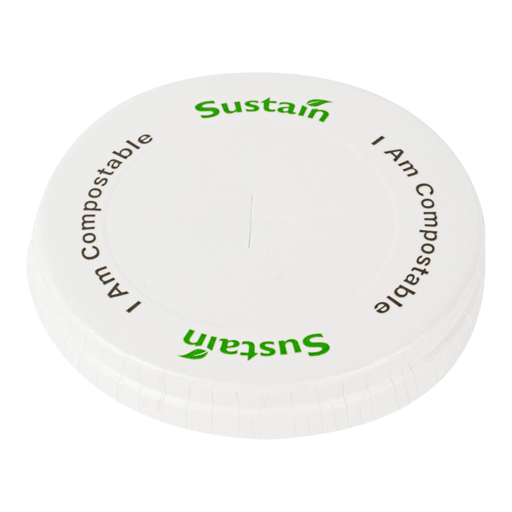 Lids, Flat, Plastic, White, PLA, Compostable, for 9/12/16/20/22 Ounce Cold Cups,1000 - 1 EACH is backordered and will ship as soon as it is back in stock.